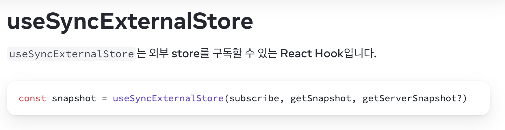 React.useSyncExternalStore(구독 함수, 스냅샷 반환 함수, (옵션-초기 스냅샷 반환 함수))