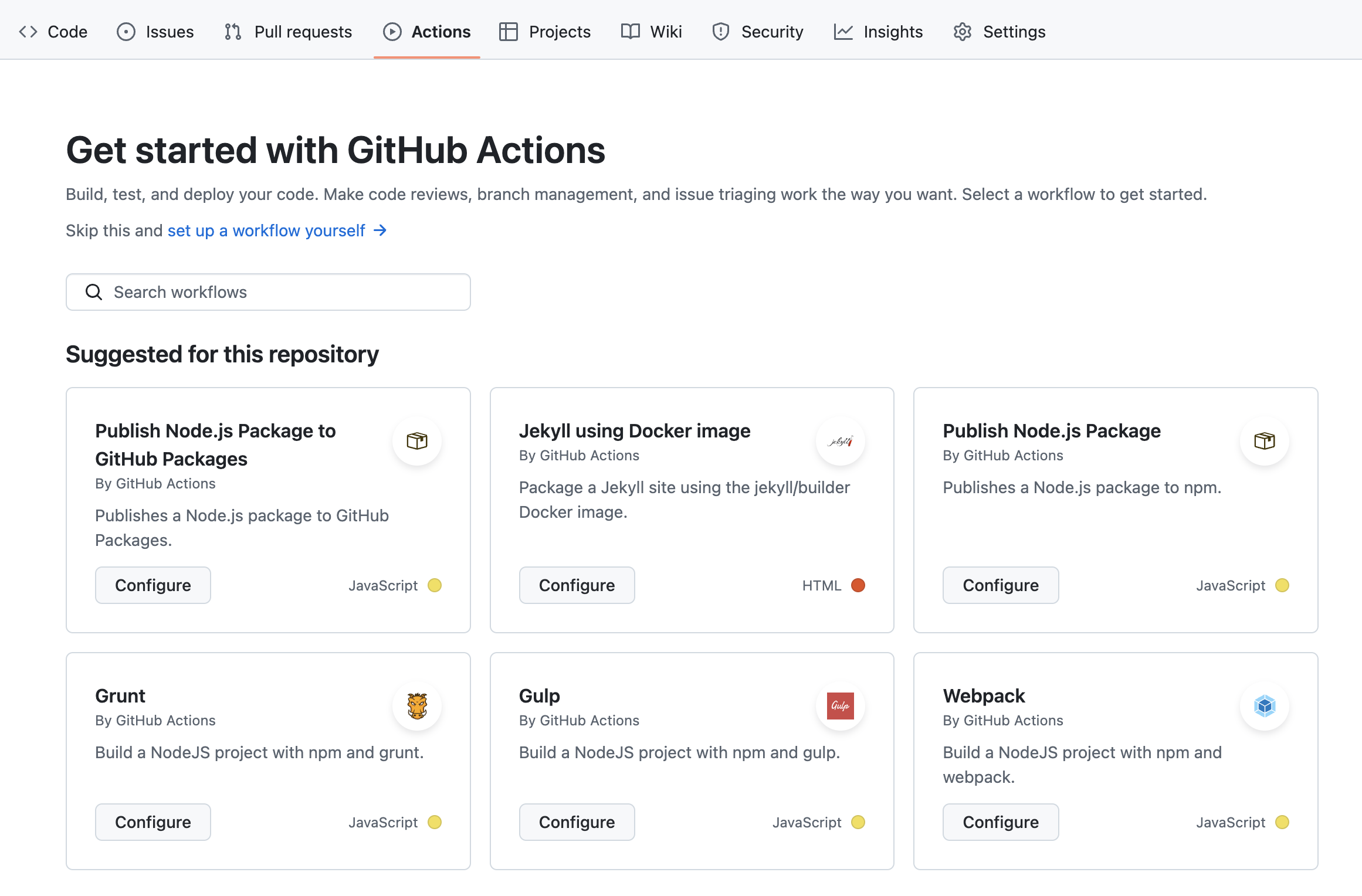 기본 템플릿에서 ubuntu-latest가 적혀있다.