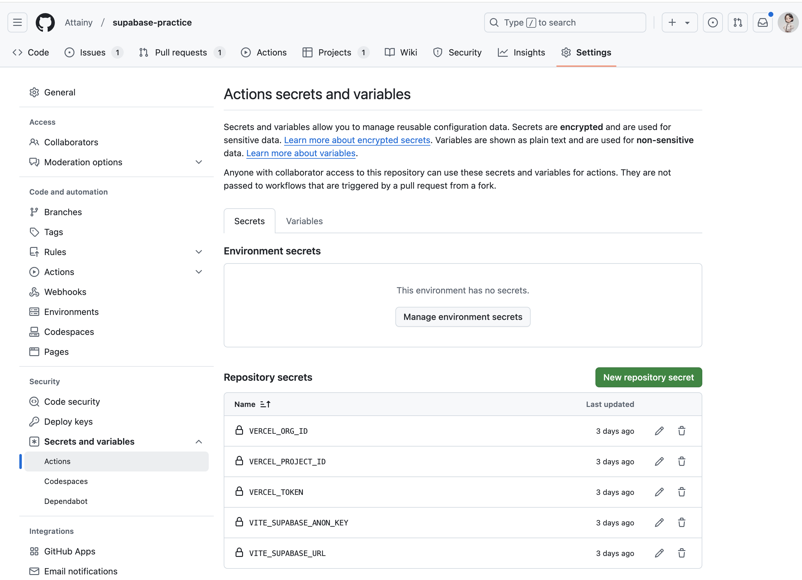 내가 작성한 yml 파일을 보면 ${{ secrets.VITE_SUPABASE_ANON_KEY }} 이런 부분이 있다.